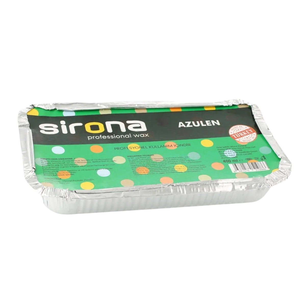 Sirona Kalıp Ağda Azulen 400 Gr, özellikle hassas ciltler için geliştirilmiş, cildi tahriş etmeden tüylerden arındıran profesyonel kalıp ağdadır. İçeriğindeki azulen özü, cildi yatıştırırken ağda sonrasında oluşabilecek kızarıklık ve hassasiyeti minimuma indirir. Kolay uygulanabilir yapısıyla evde ve güzellik salonlarında güvenle kullanılabilir.